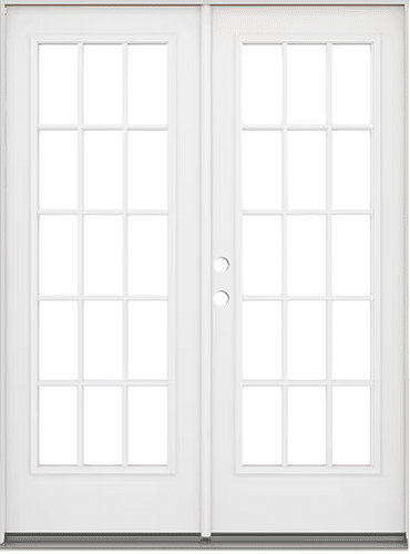Our 72" steel French doors with 15 pane windows. Features two 36" wide doors that both open out. Available in both White or Black. Includes a keyed lockset with a deadbolt. Overall dimension 72"w x 80"h.
