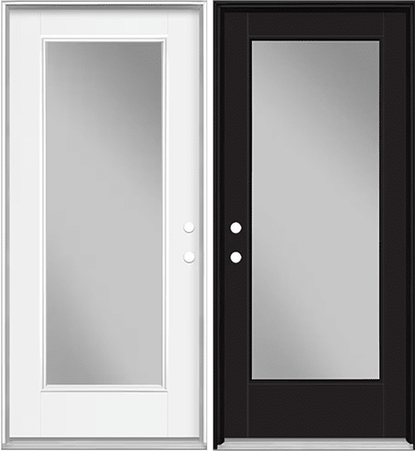 Our 36" steel exterior door including a full glass window (22"x64"). Features a single 36" wide door that opens out. Available in both White or Black. Includes a keyed lockset with a deadbolt. Overall dimension 36"w x 80"h.