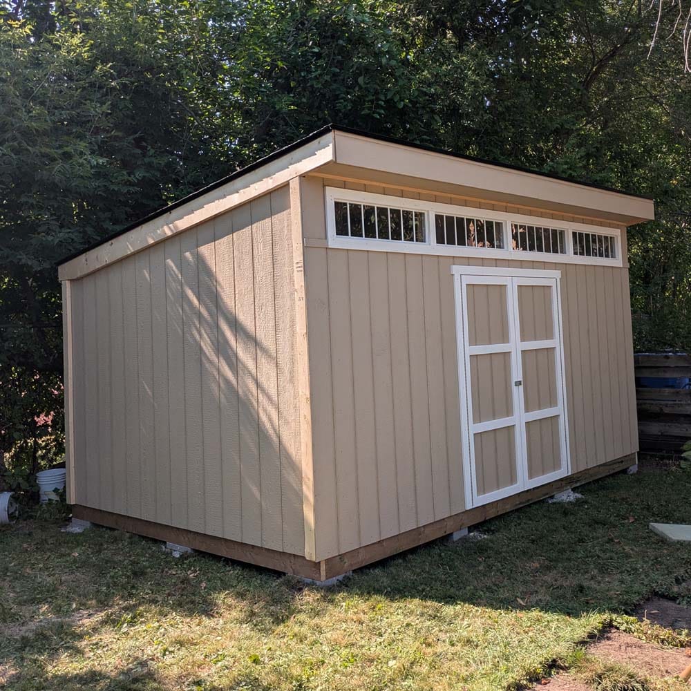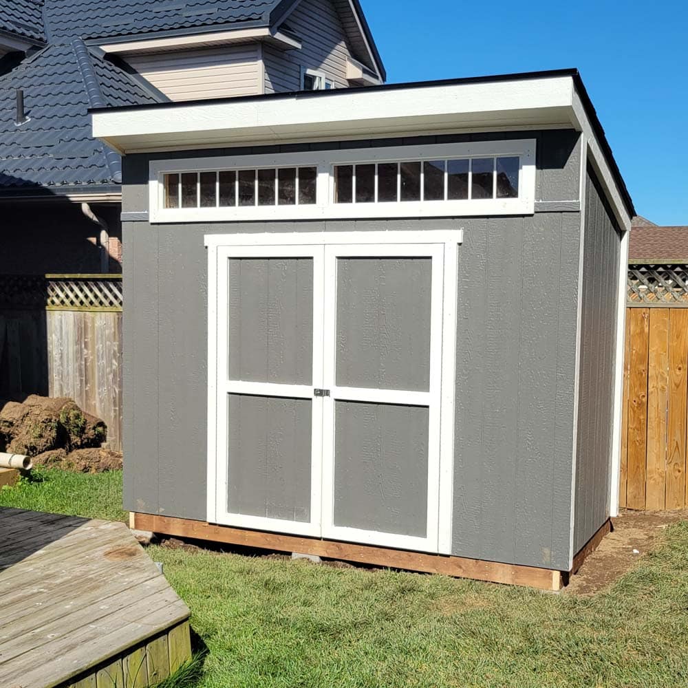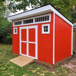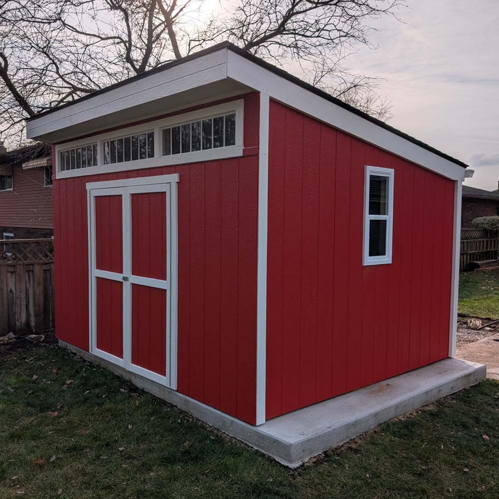 • Signature Modern Profile: The single-pitch roof and 1′ front overhang provide a sophisticated, custom-built appearance.