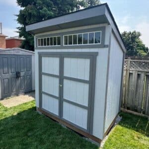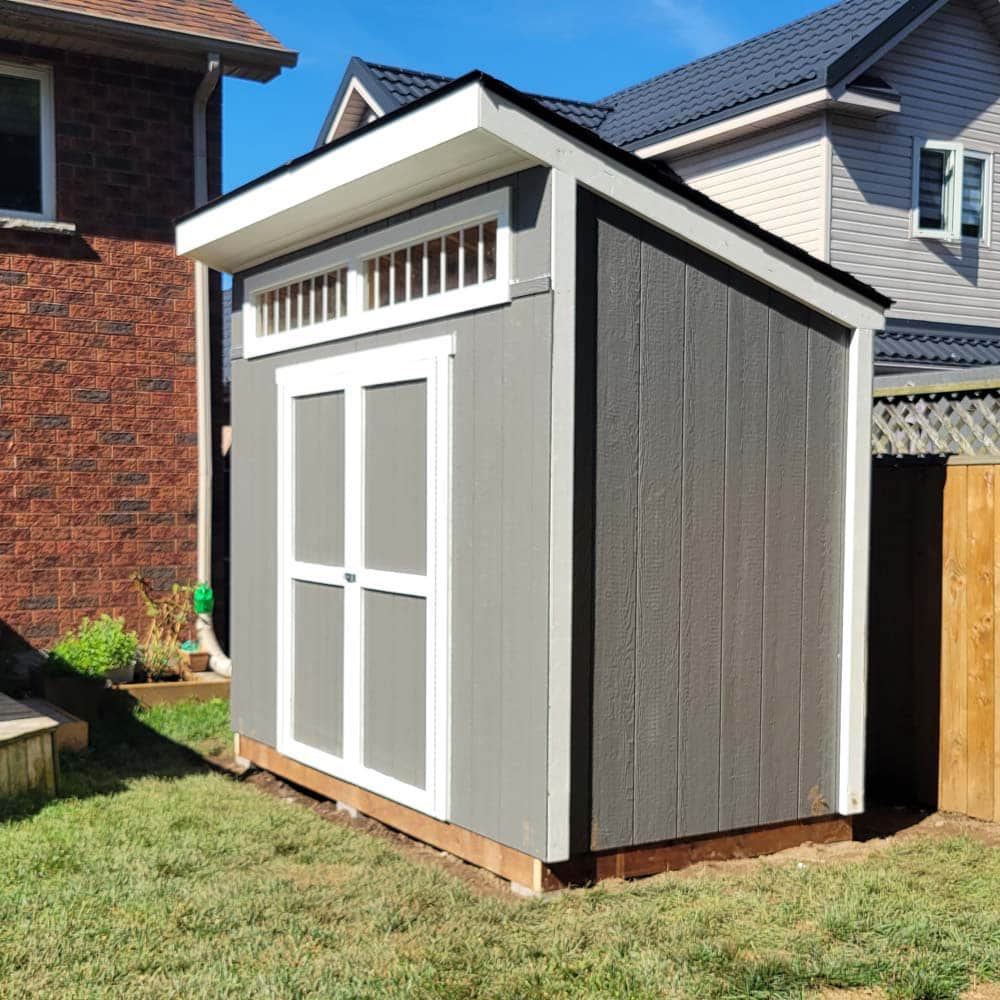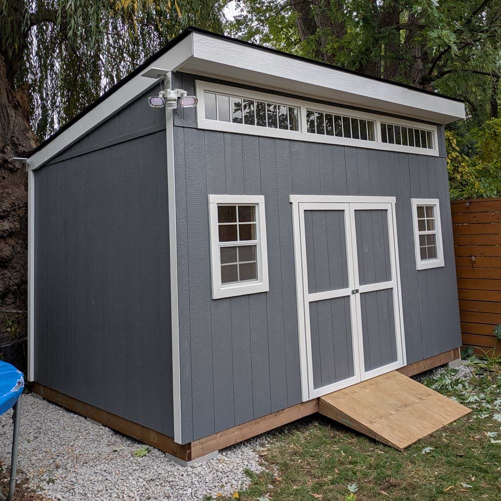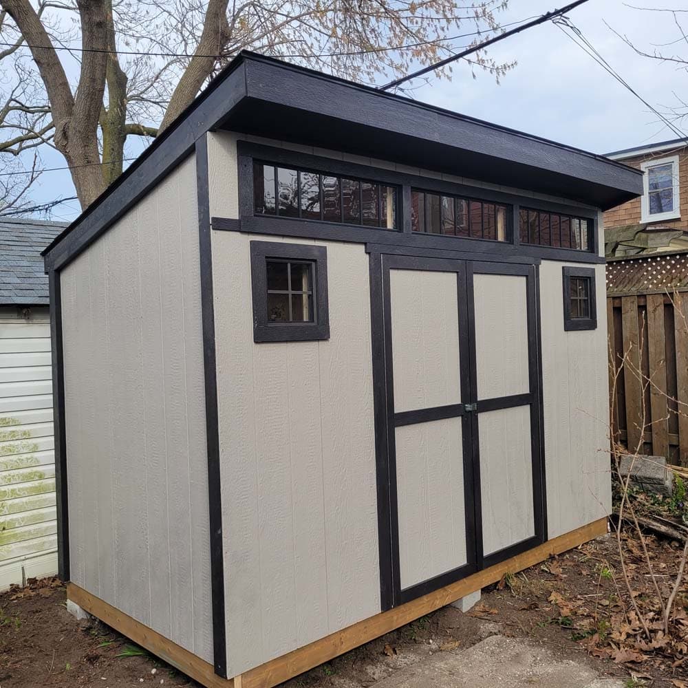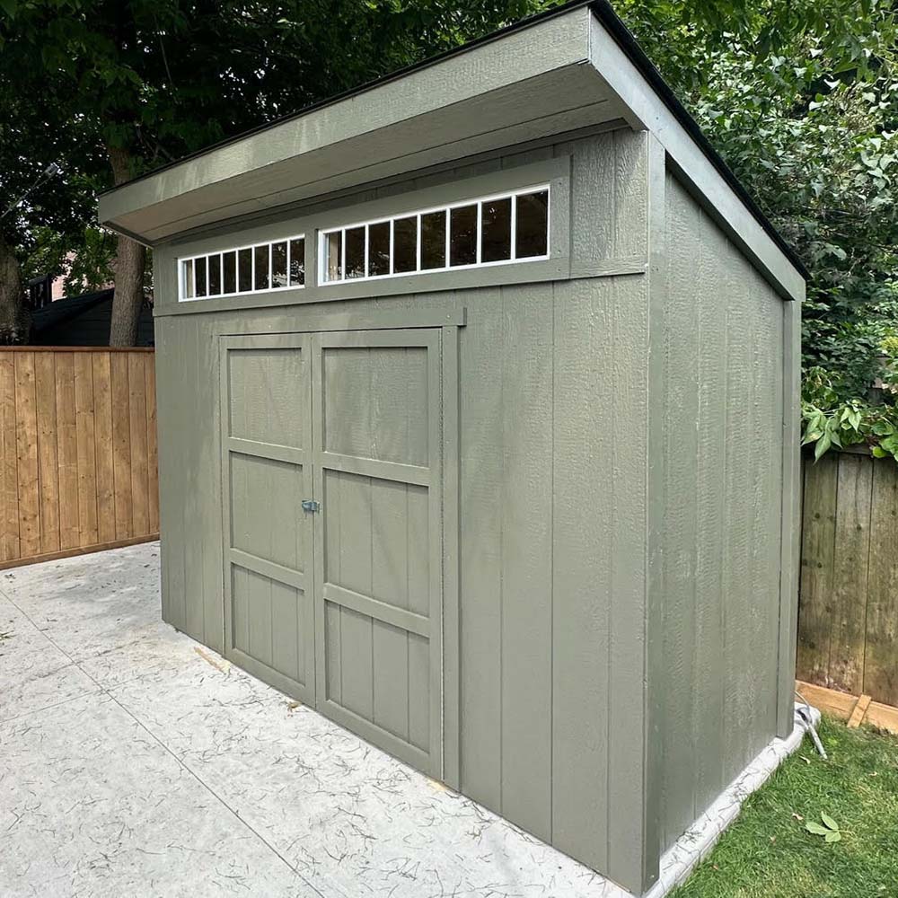 • Signature Modern Profile: The single-pitch roof and 1′ front overhang provide a sophisticated, custom-built appearance.